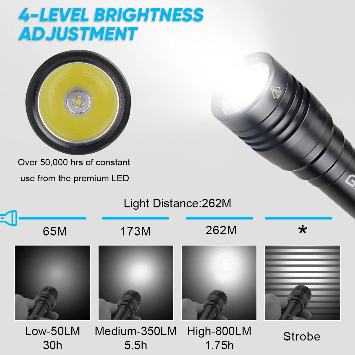 With super light beam, can up to 9000Lm waterproof diving flashlight